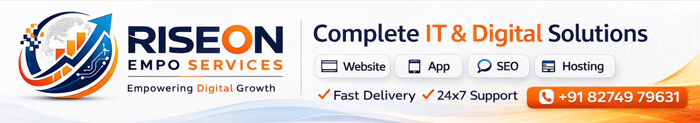 At RISEON EMPO, we deliver complete IT and digital solutions designed to help businesses grow, scale, and succeed in the modern digital world. From web development and app solutions to digital marketing and automation.